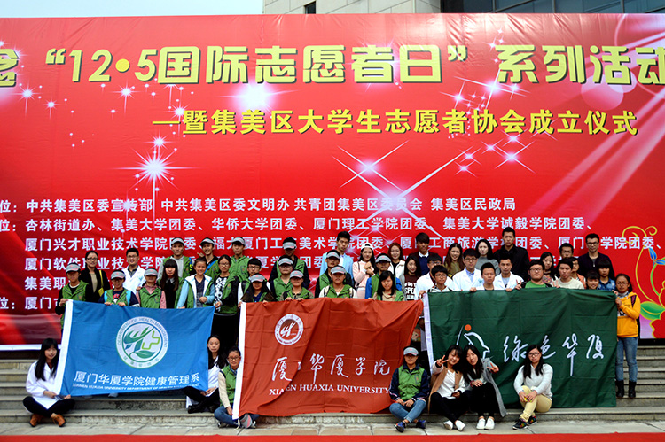 12月5日上午,由集美区宣传部、文明办、民政局、团区委主办的纪念“12.5”国际志愿者日系列活动暨集美区大学生志愿者协会成立仪式在杏林文体中心广场举行。我校作为协办单位之一受邀参会。