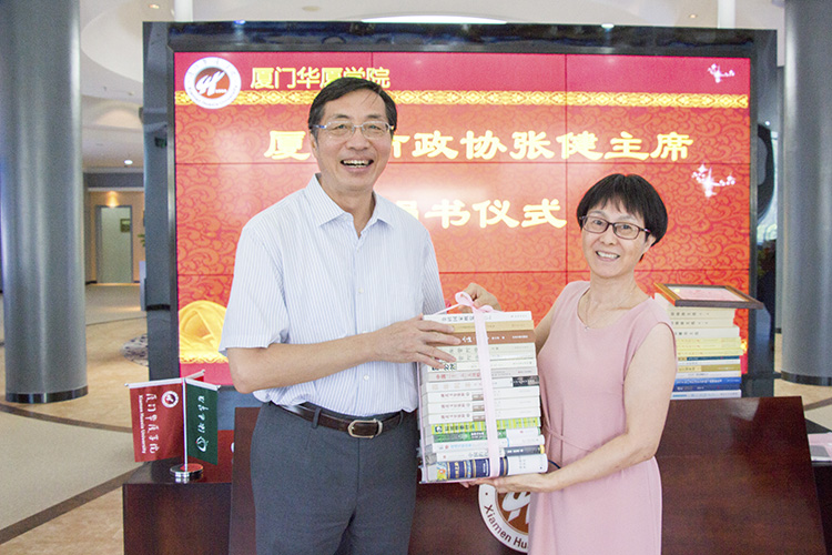 张健主席一行参观了学校的教育部—中兴通讯ICT产教融合创新基地、检验科学与技术系实验室、社区康复专业实验室等。张健主席向学校捐赠了77种102册文献,内容涉及政治、经济、历史、统计年鉴等方面。尤其是其中一套《厦门文史丛书》,是由厦门政协文史委牵头,市文化局、市图书馆等多家单位及多位厦门文史专家全力配合编撰而成的,展现了老厦门的风貌习俗。张健主席的这批赠书,不仅补全了该丛书系列的学校馆藏,同时也为师生提供了更加丰富的精神食粮,开拓更广阔的视野。